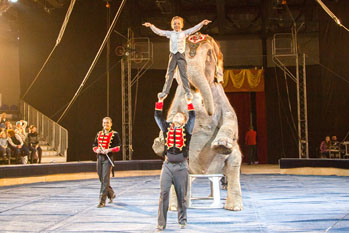- The icing on the cake is considered as the Trio of Elephants, an exclusive show led by the Alex and Christian Gärtner Brothers (Germany-Ireland) who are laureates of International competitions for circus artists in Italy, Spain, and the winners of the contest in Monte Carlo. These elephants also became famous after having starred in Naomi Campbell’s music video. Moreover, an independent performance of the 2 – 5 year-old artists together with the biggest animals in the world will definitely impress everyone!